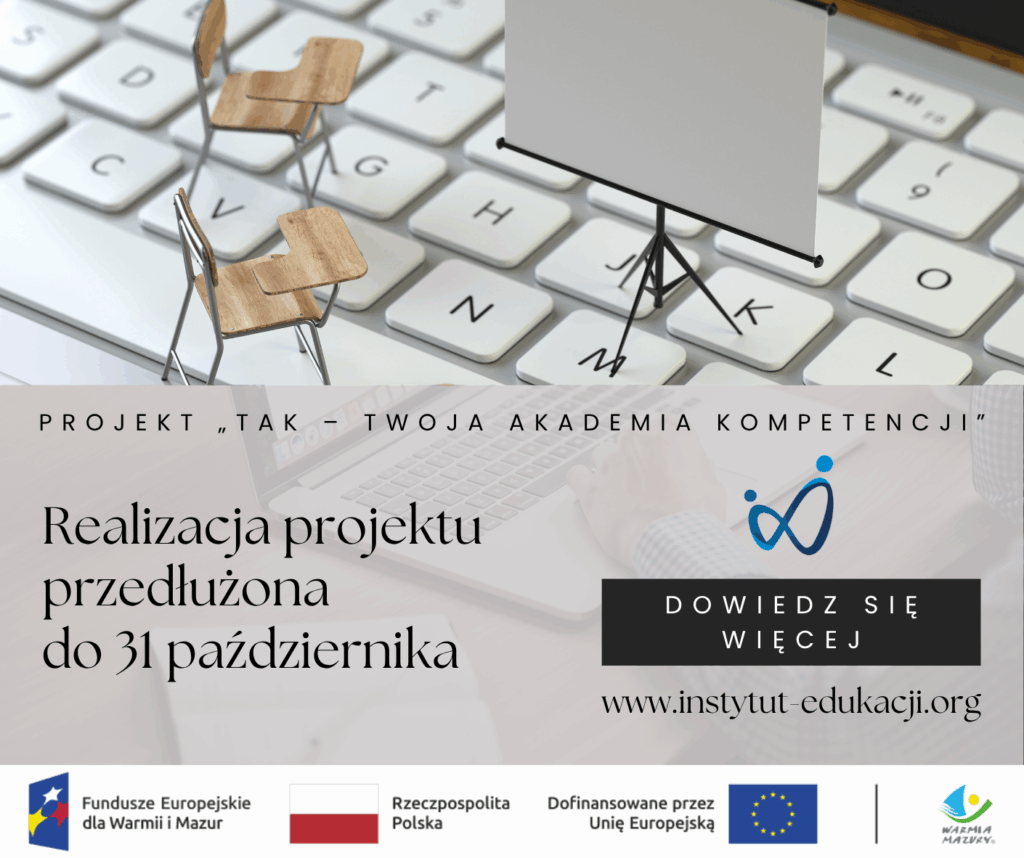 Fundacja Instytut Edukacji realizuje projekt dofinansowany z Funduszy Europejskich pn. „TAK – Twoja Akademia Kompetencji”.